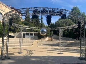 La importancia del ground support es clave en muchos montajes. Por ello, en Sonolux S.L. disponemos de sistemas de soporte y estructuras autoportantes que permiten crear soluciones seguras y estables incluso en espacios sin puntos de anclaje superiores, ampliando las posibilidades técnicas y creativas.